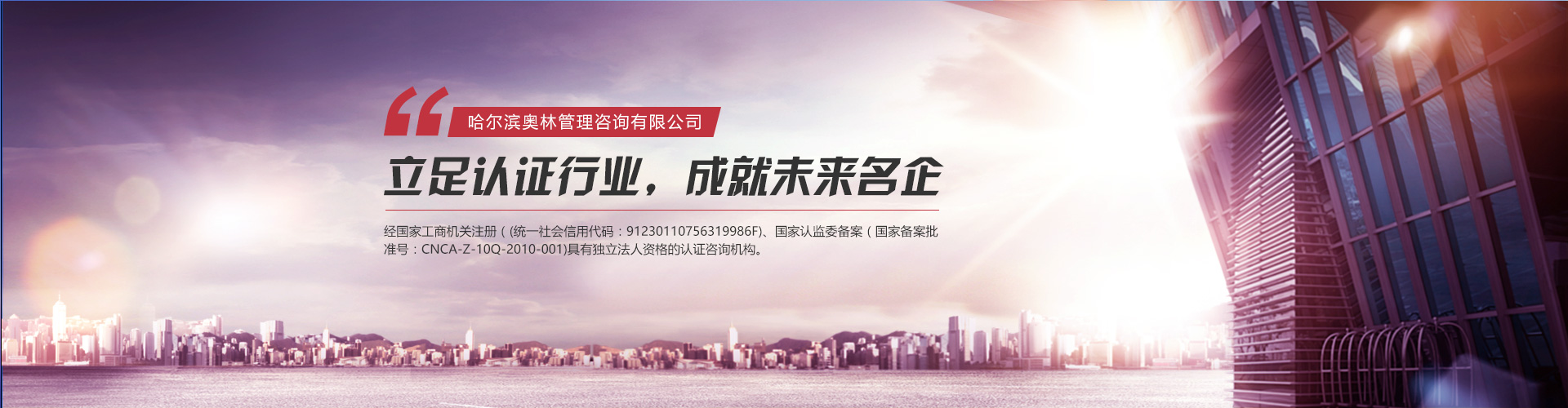 哈爾濱奧林管理咨詢有限公司(原新時代質(zhì)量認證咨詢有限公司)成立于2000年9月,簡稱HOL,HOL是經(jīng)國家工商機關(guān)注冊(統(tǒng)一社會信用代碼:91230110756319986F)、國家認監(jiān)委備案(國家備案批準號:CNCA-Z-10Q-2010-001)具有獨立法人資格...